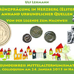 öffentlicher Vortrag von Ulf Lehmann zu seinem Forschungsthema "Münzprägung in Herzberg (Elster) anhand urkundlicher Quellen. Von der Legende zum Nachweis." Die ausführliche Einladung findet man hier.