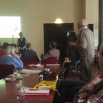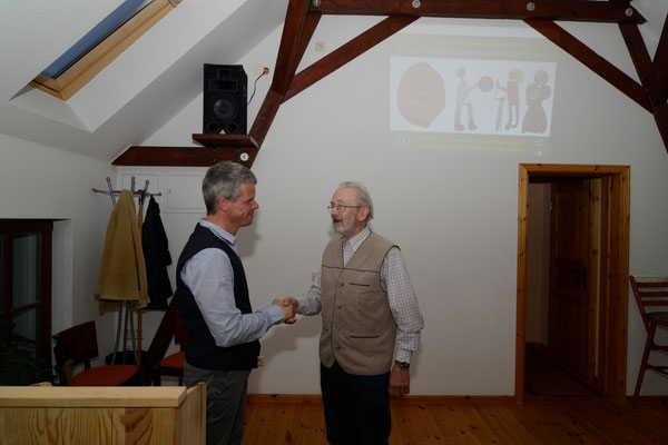 Mit Spannung verfolgten Steffi, Horst, Volker, Immo und Sievert die Reaktionen und die von allen erhoffte Akzeptanz der "Fachwelt". Dazu drückten wir Ulf alle Daumen, und er machte seine Sache gut! Unsere Hoffnungen wurden nicht enttäuscht, auch wenn kritische Fragestellungen und Gegenhypothesen wie erwartet nicht ausblieben. Ulf parierte sie redegewandt und überzeugend, nicht zuletzt auf Basis fundierter Kenntnisse an Fakten, Jahreszahlen und geschichtlichen Zusammenhängen. Am Ende des Tages stand für alle fest, dass Münzprägung in Herzberg sehr wahrscheinlich gewesen ist, auch wenn eine zweifelsfreie Zuordnung konkreter Belegexemplare bislang noch nicht möglich war.